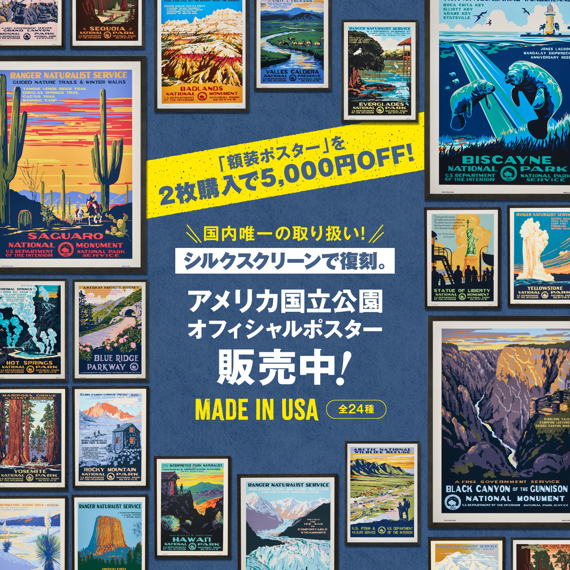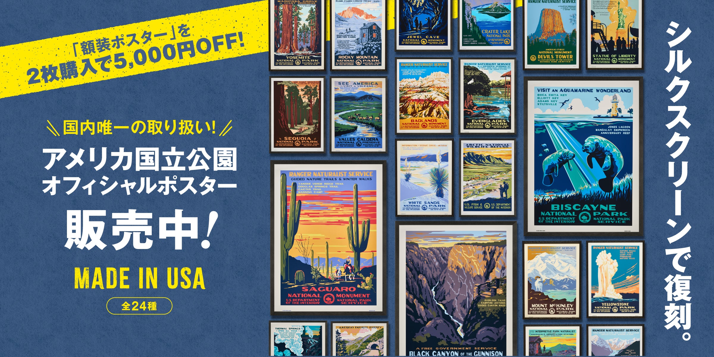 1935〜1943年にアメリカのアーティストたちが描いた希少な国立公園のオフィシャルポスターを、同国の『レンジャーダグス・エンタープライゼズ』が復刻。当時のポスターの美しい風合いを完全再現するため、アメリカでシルクスクリーンプリントで作られている。