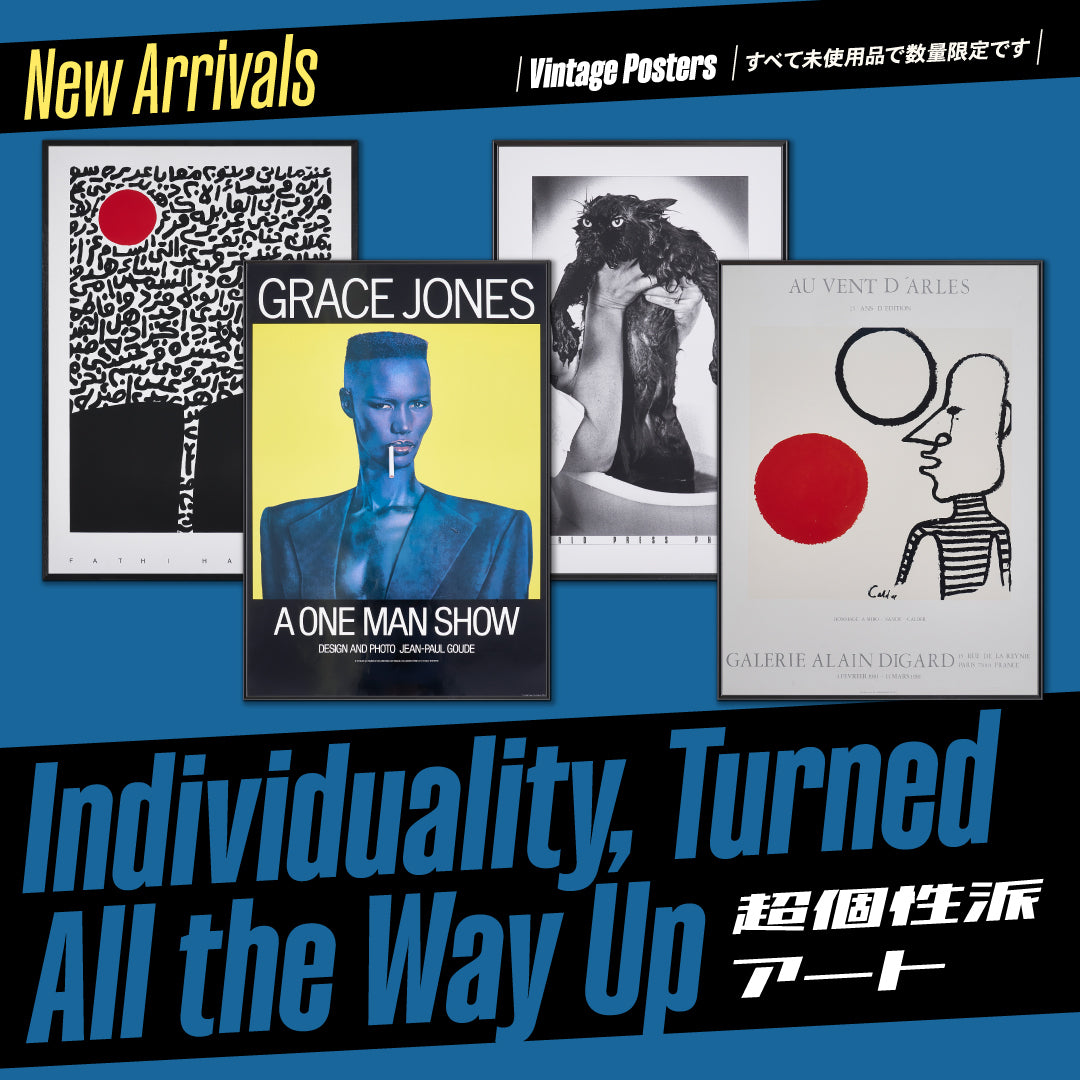 世界各地の著名な美術館やギャラリー、百貨店などで開催された展覧会や作品展のためのポスター。展覧会を象徴する作品と、開催日時や場所などの文字情報を組み合わせたポスターデザインは、ヴィンテージのプリントTシャツに通じるカッコ良さがあり、POP ART BANANASでは推しのカテゴリーだ。