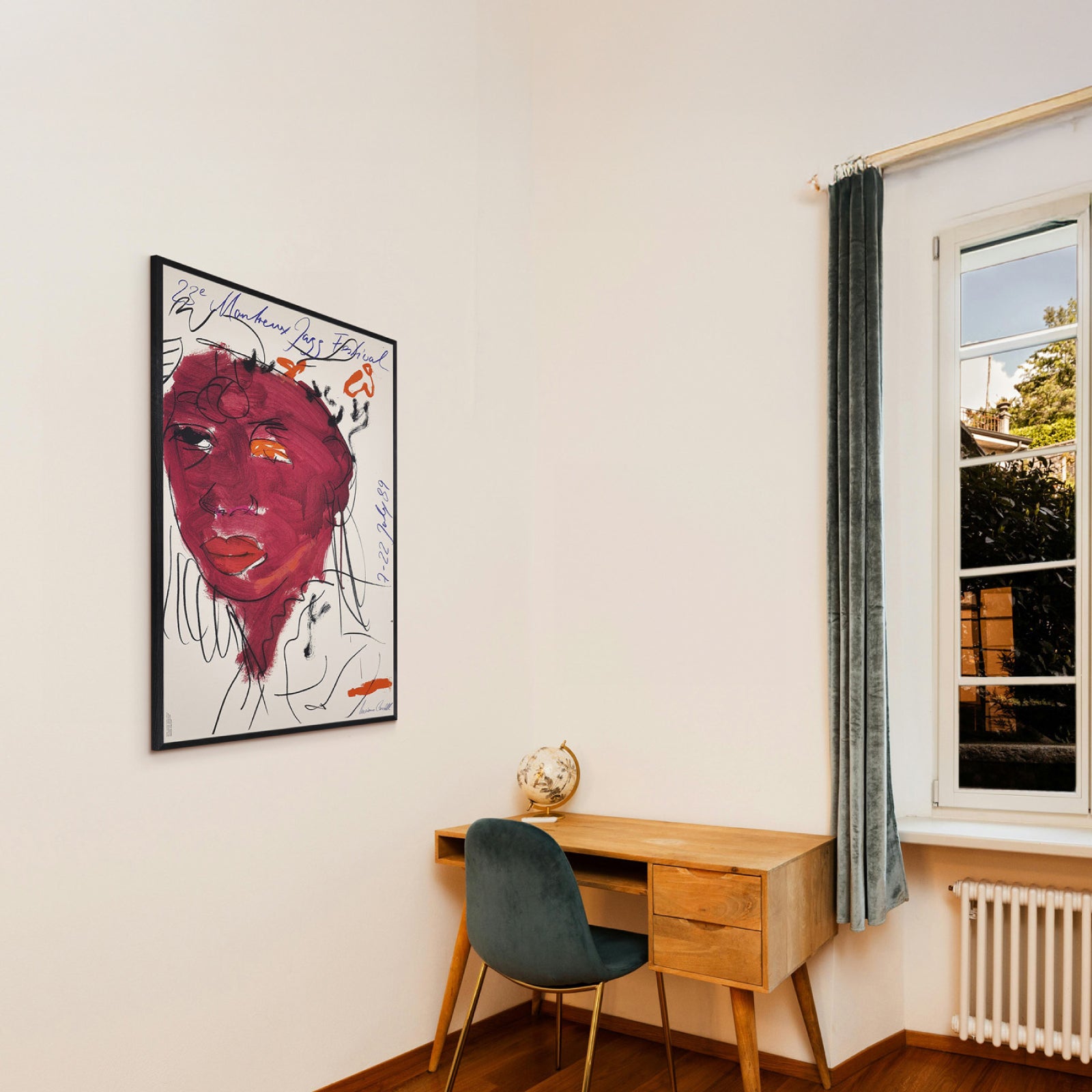 厚手のインクの風合いが抜群で、発色もすばらしいです。どんなインテリアでもすんなり飾ることができる魅力的な1枚だと思います。音楽がお好きな方、『モントルー・ジャズ・フェスティバル』のポスターを集めている方にもオススメです!