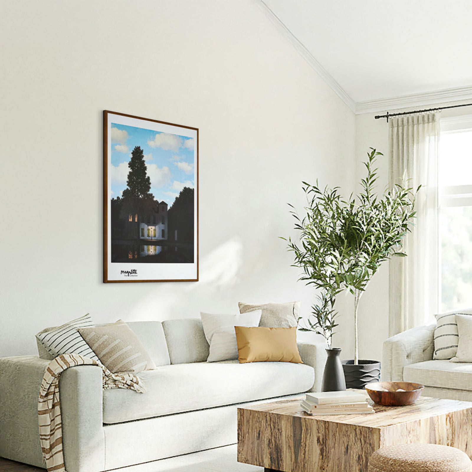 風景画として飾っていただきたいのですが、シンプルな空間ほどマグリットらしい「奇妙さ」が際立ちます。スタイリッシュで洗練されたインテリアがお好きな方に、ぜひオススメしたい1枚です。