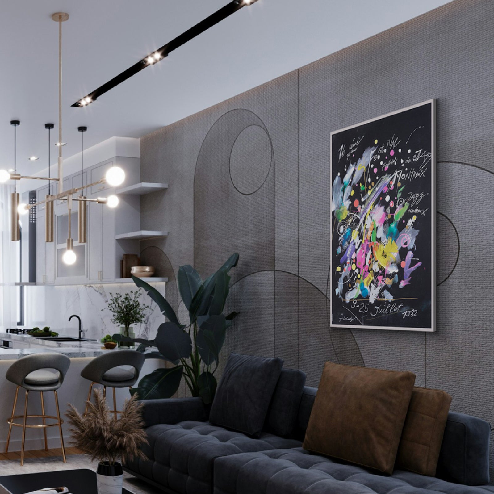 無機質でスタイリッシュな空間に飾ると非常に映える作品。洗練された印象を引き立てるエレガントな佇まいと、その研ぎ澄まされた空間の印象をフッと和らげるポップさを持ち合わせた作品ですので、シンプルな空間でオシャレなアートをお探しの方に、特にオススメしたい1枚です。