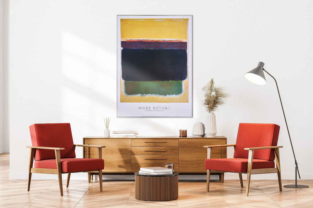 こちらもマーク・ロスコのポスターです。1998年にアメリカのワシントンD.C.にある国立美術館『ナショナル・ギャラリー・オブ・アート』がオフィシャルで作った1枚です。イエローを基調にグリーン、ネイビー、パープル系が配された作品で、どんなインテリアにも取り入れやすいと思います。空間に挿し色をする感覚で飾っていただきたいです。