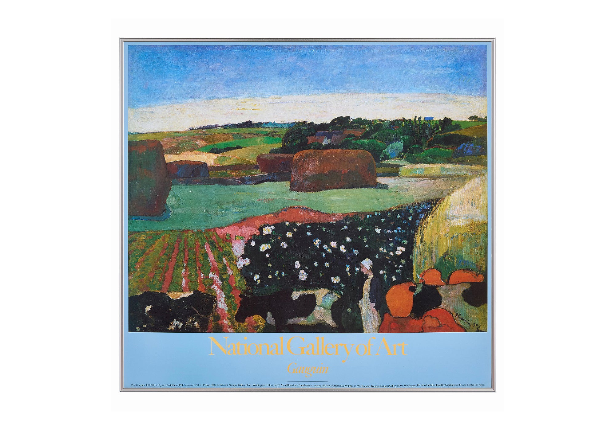 フランスの画家であるポール・ゴーギャンが1890年に描いた作品を使い、ワシントンD.C.にある国立美術館『ナショナル・ギャラリー・オブ・アート』が1988年にポスターとして製作した1枚です。ライトブルーを背景に使っていますので、よりポップな印象に仕上がっています。