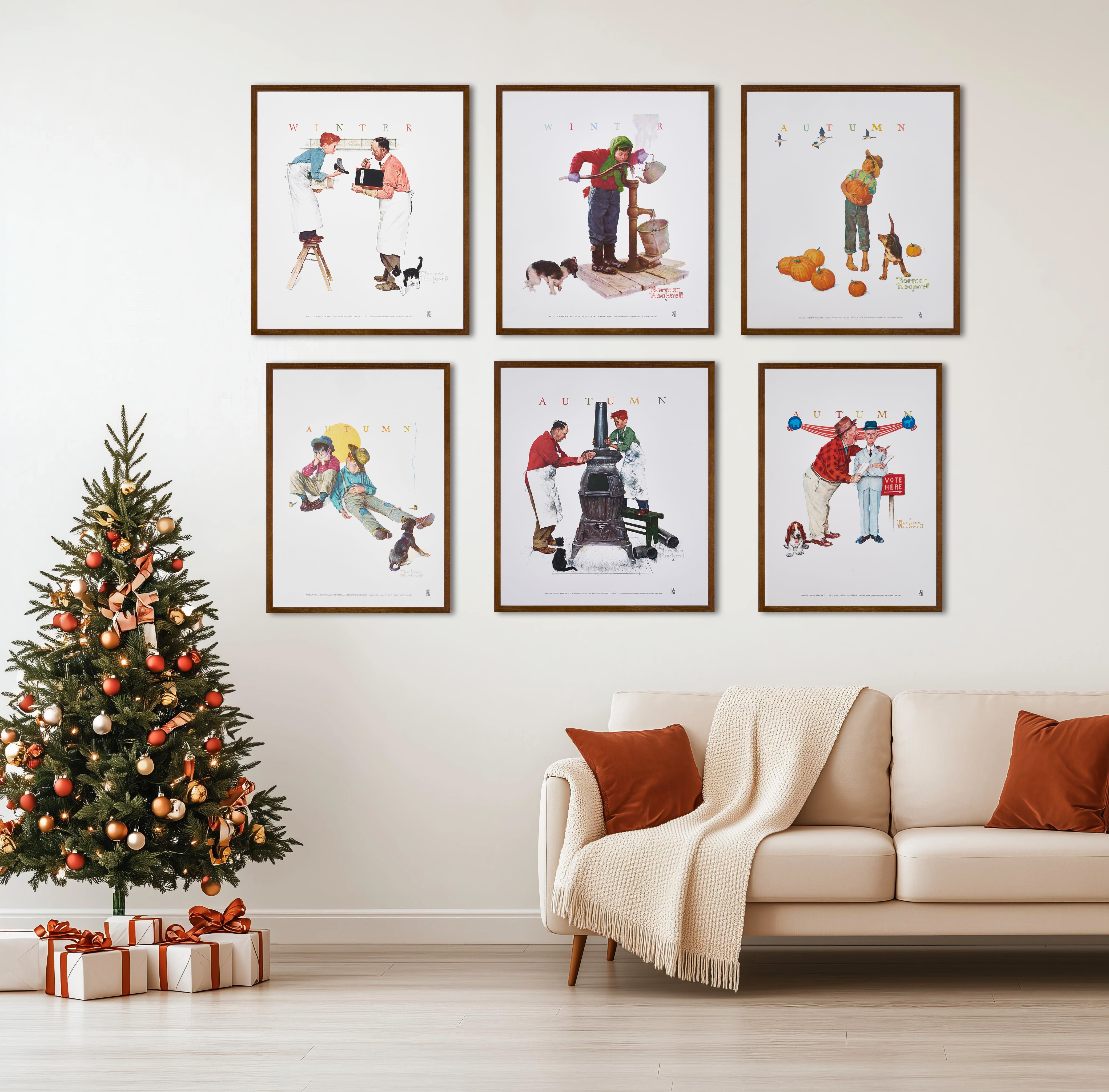 大切な人と過ごすクリスマスは、インテリアの雰囲気も重要です。ツリーへのイルミネーションなどの飾り付けだけでなく、その空間も温かい雰囲気にしたいものです。そんな時にロックウェルの作品がピッタリ! 飾るだけでぬくもりのある空間を演出できます。1枚で飾るのもいいですし、複数枚を組み合わせて飾るのもいいでしょう。ヴィンテージアメリカンなテイストに合わせて、今回はウッドのダークブラウンとオークという2色の額装をご用意しました。ともに熟練の職人にオーダーメイドしていただいたものですので、ロックウェルの作品の魅力をさらに引き出してくれます。ぜひ今年のクリスマスは、ロックウェルの作品を飾って楽しんでみてはいかがでしょうか。