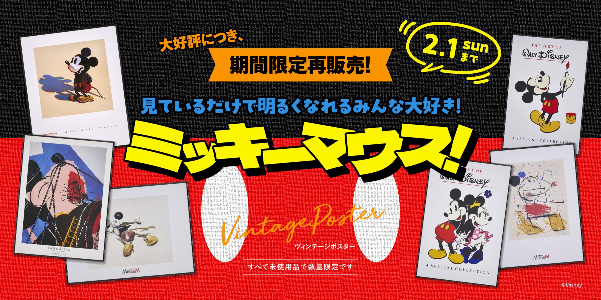 POP ART BANANASで取り扱っているヴィンテージアートの中には、ディズニーをテーマにしたものも少なくない。その中でも人気が高いのが、やはりミッキーマウスをテーマにした作品だ。ここでは、アンディ・ウォーホルやウェイン・ティボーのようなポップアートを代表する作家から、ラッセ・アベリのような知る人ぞ知る作家のものまでピックアップ。全て何十年も前に作られたヴィンテージポスターだが、未使用品の極上品ばかり取り揃えている。当然ディズニーのオフィシャルものなので、ディズニーがお好きな方はもちろんのこと、キャラクターものがお好きな方にもオススメだ。世界的に人気があり、さらにヴィンテージとなると残存数にも限りがあるため希少性は高まるばかり。ぜひ今のうちに入手しておいていただきたい。
