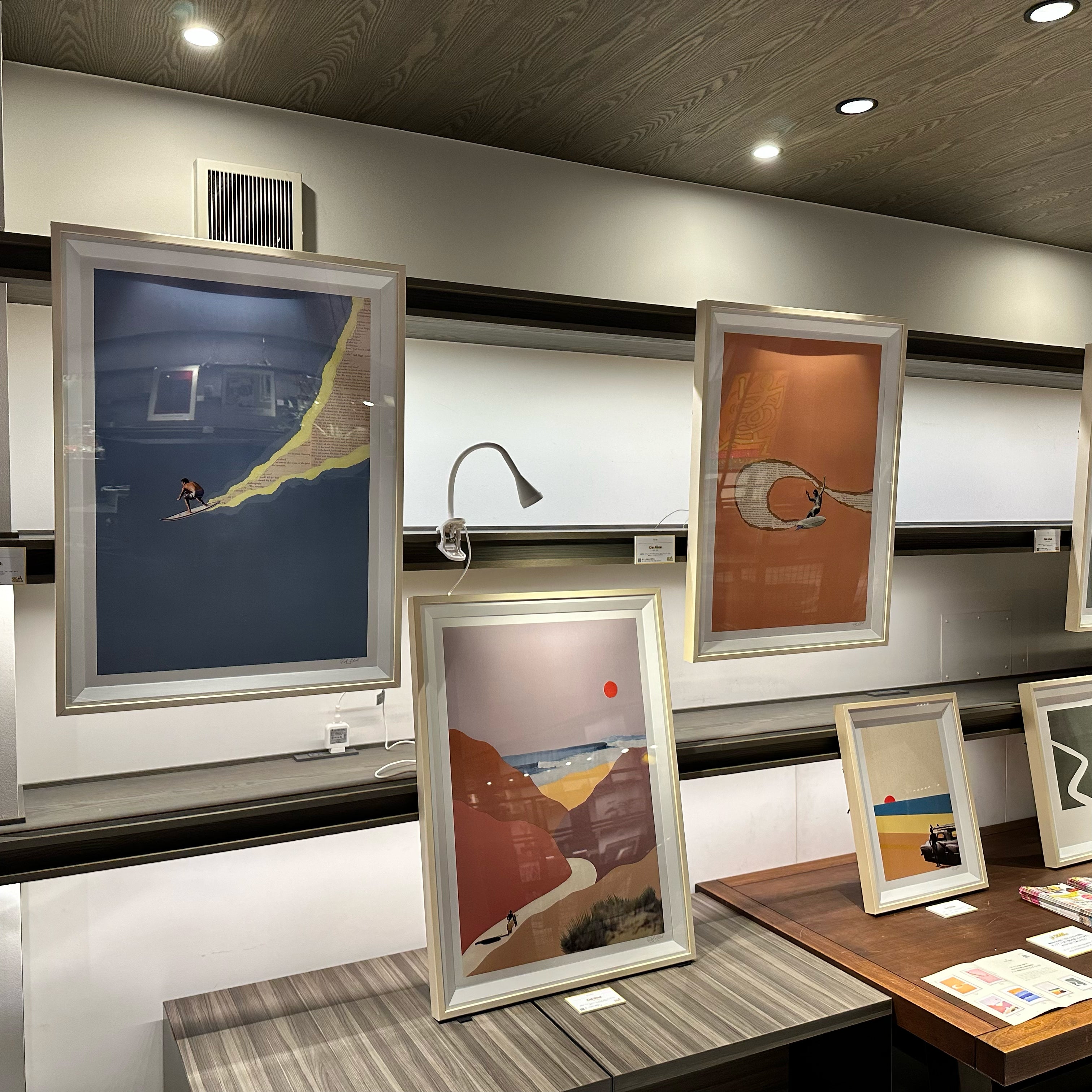 さらに戦前に存在したアメリカ国立公園のオフィシャル品を復刻した希少なアメリカ製ポスター、サーフィンと海をテーマにコラージュアートを手がける新進気鋭のフランス人アーティストであるシエル・グルーの作品も含め、約40点を展示販売します。